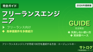 ※本記事にはプロモーションが含まれます🔍 【2026年最新】フリーランスエンジニア エージェント 比較|高単価案件に強いおすすめ5社と正しい使い方「正社員のままじゃ給与上限が見えてきた。フリーランスに転向して月単価80万以上・フルリモートで...